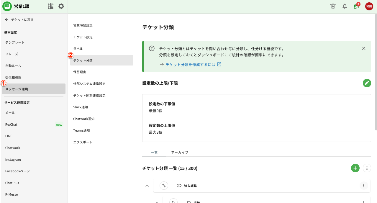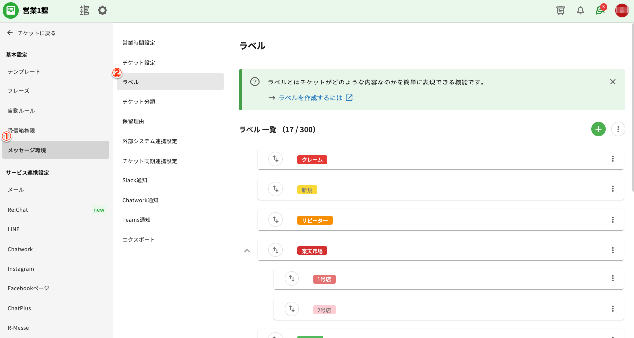 ・同じ受信箱設定内の[メッセージ環境]>[チケット分類]から該当のラベル名が存在するかご確認ください。