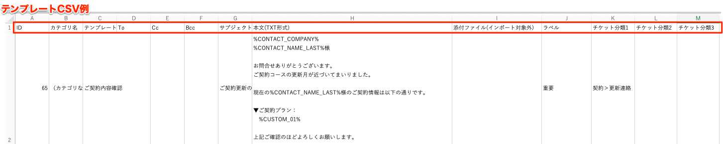 ・エラー④ チケット分類が存在しない場合テンプレート/フレーズのデータをインポートする際に、テンプレートファイルが必要な場合、