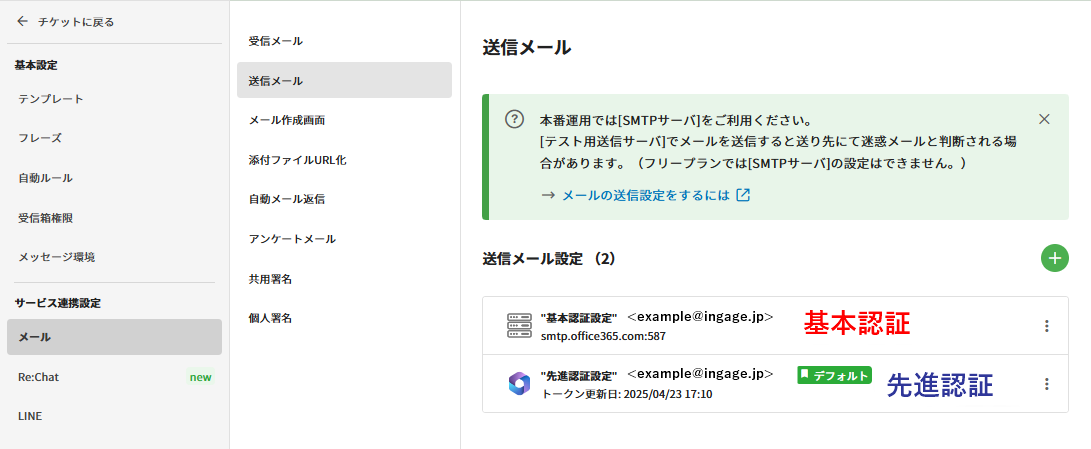 2022年7月1日以降、今まで基本認証をしたことがない場合、基本認証を使用したSMTP送信設定が利用できなくなります。