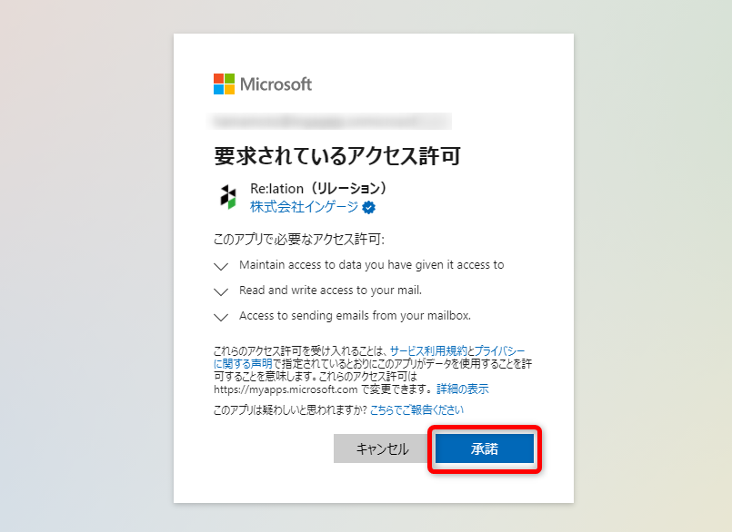 5.Re:lationにアクセスを許可するか尋ねられるので、[承諾]をします。