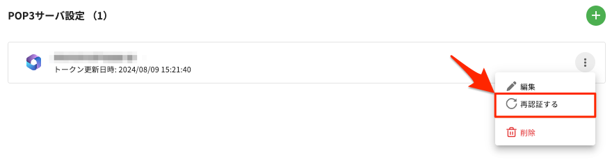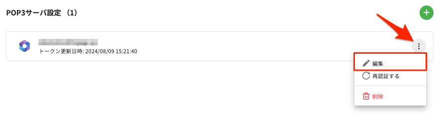 認証も無効となるため再認証が必要となります。1.[受信メール]より、該当のMicrosoft Exchange Online(Office 365)POP3サーバ設定の