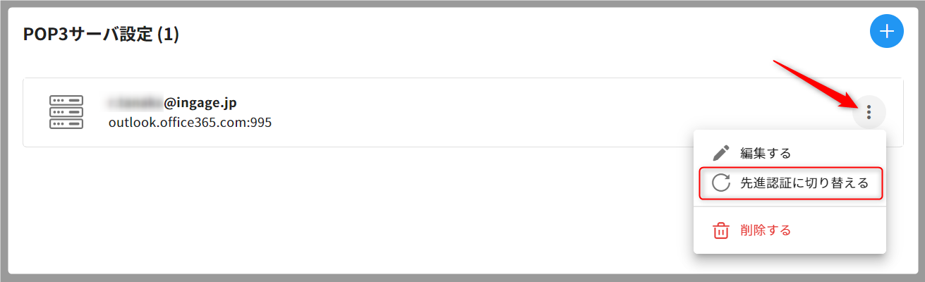 設定右側のメニューアイコン[…]より、[先進認証に切り替える]を選択します。
