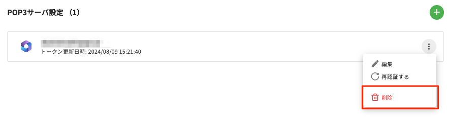 その後、[POP3サーバ設定]の「+」をクリックします。