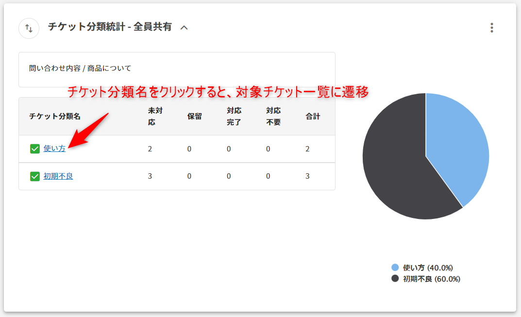 FAQ チケット分類統計・チケット一覧を確認するには