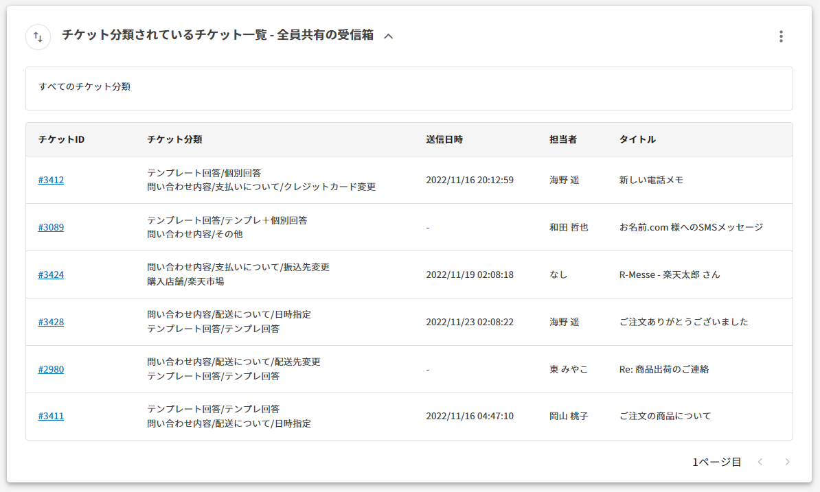 以下のチケット分類の結果を確認することができます。