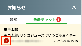 その他チャットの新着通知と同様、右上の[新着チャット]に新着通知が届きます。