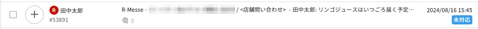 件名は「R-messe(店舗名)名前 さん/<お問い合わせカテゴリ>」で表示されます。