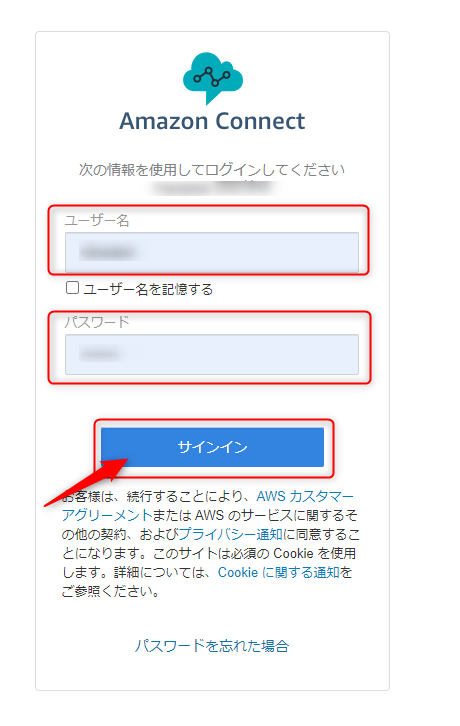 [ユーザー名][パスワード]を入力して[サインイン]をクリックします。