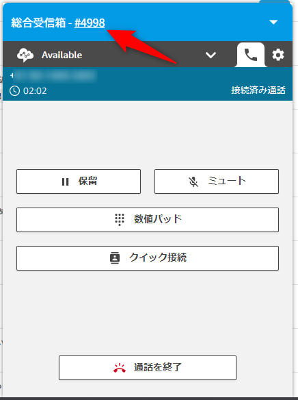 3.ダイアルパッド上部にチケットが作成されている「受信箱名」および「チケットID」が表示されます。