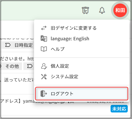 1.右上のアイコンをクリックし、[ログアウト] を選択します。
