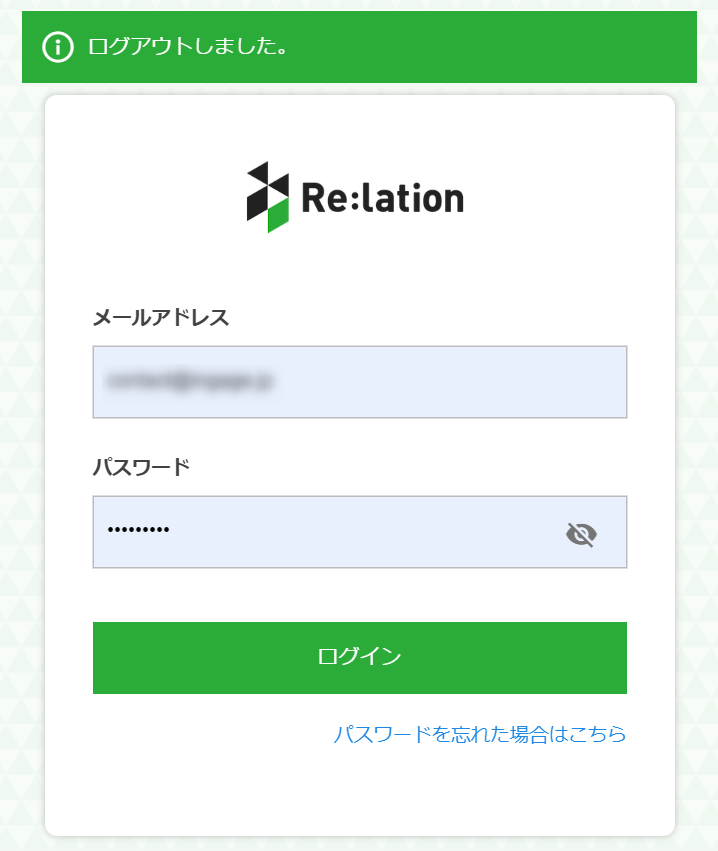 ・ログアウトした際、同一ユーザアカウントにて他タブでログインしているRe:lationからも自動でログアウトされます。