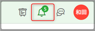 ・検索結果をすべてアーカイブする通知確認方法自分宛てに新しく通知が来た際、画面右上のベルマークが緑色に光り、新着通知の件数が表示されます。