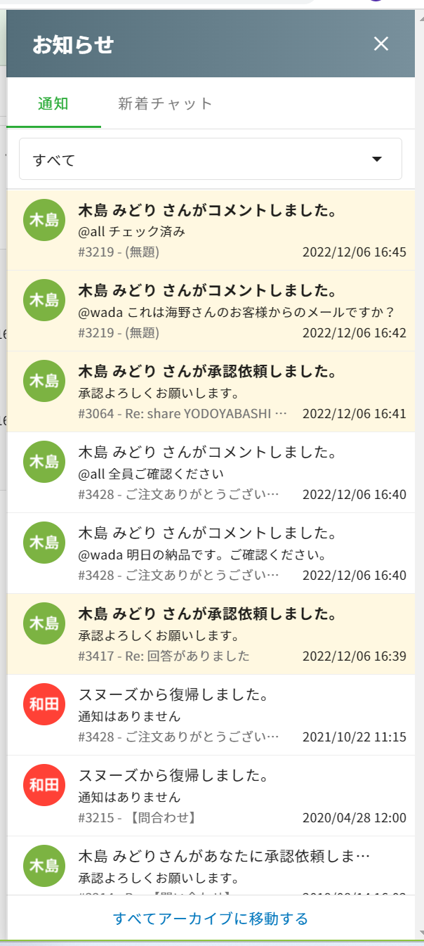 ・アーカイブ済の通知アーカイブについて確認や対応が済んだ通知を「アーカイブ」することで、 必要な通知のみを通知欄に残すことが可能です。