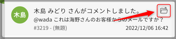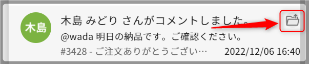 アーカイブしたい通知にカーソルを合わせると、 右上にフォルダアイコンが表示されます。
