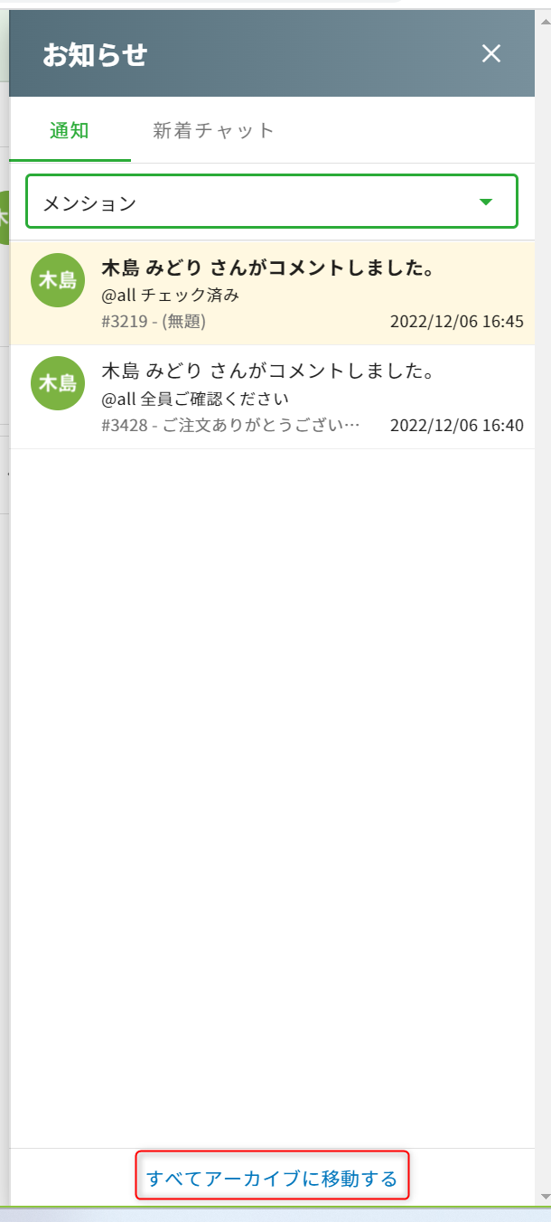 ・既読且つ2022年8月10日以前の通知は、すべて自動でアーカイブされています。こちらでは以下項目を説明しています。