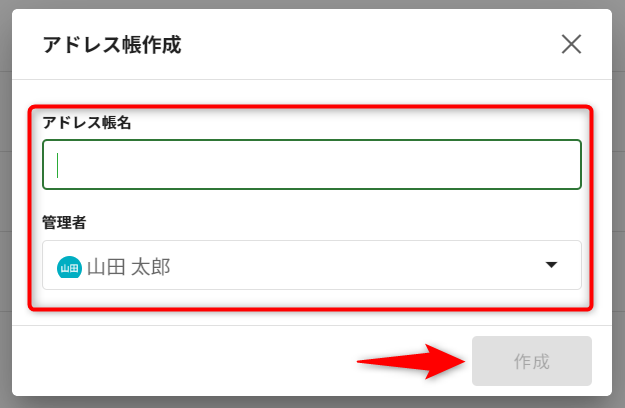 3.「アドレス帳名」を入力し、「管理者」を選択します。