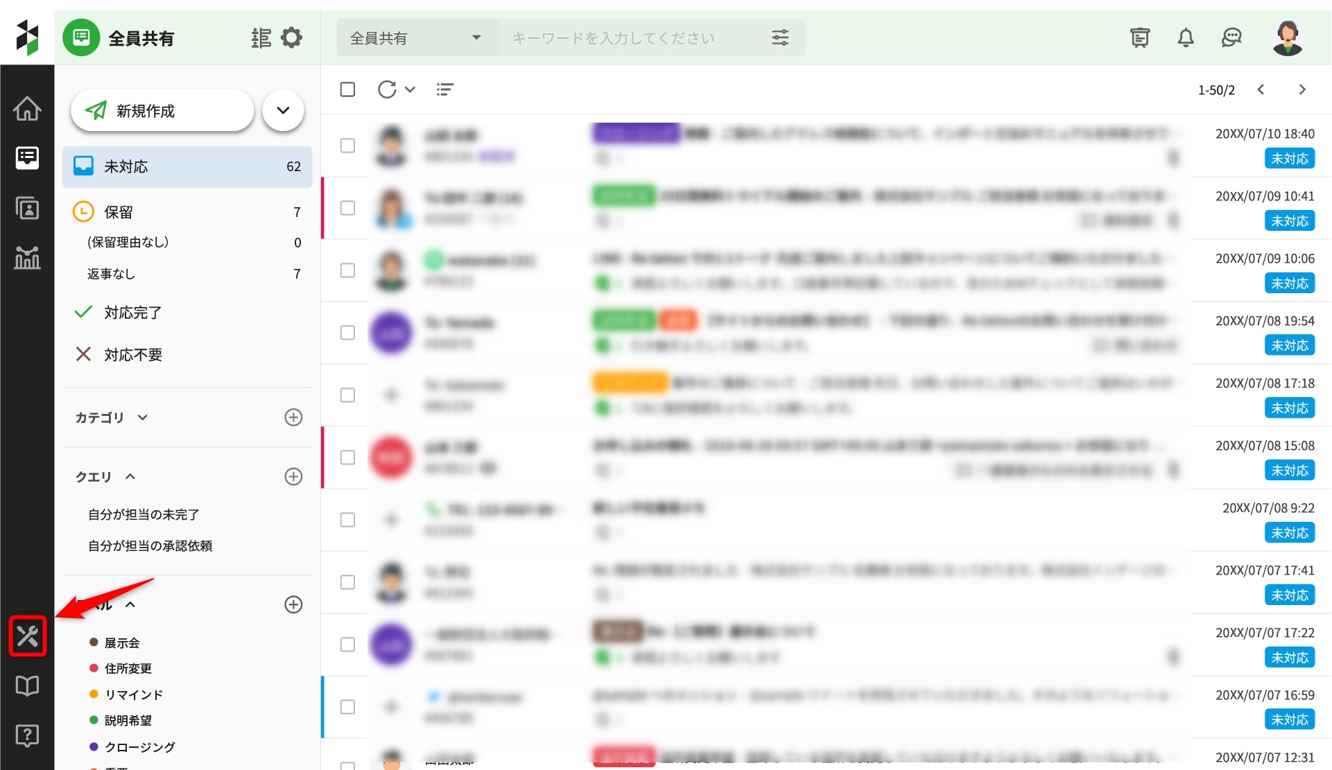 1.グローバルナビゲーションバーのツールアイコンより「システム設定」を選択します。