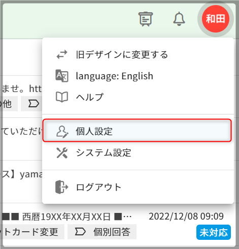 1.Re:lation画面右上のアイコンをクリックし、[個人設定]を選択します。
