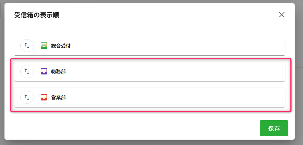 並び替えたい受信箱の[↑↓] 部分にカーソルを移動させると Drag & Drop で表示順の変更ができます。