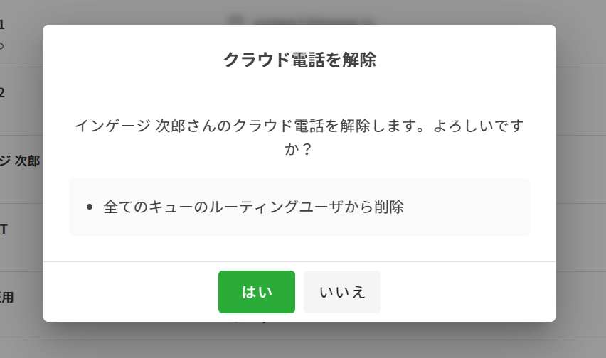 クラウド電話利用を解除する前にRe:lationユーザ自体を削除した場合、クラウド電話のルーティング設定も削除されます。