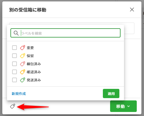 移動先の受信箱でラベルを設定したい場合、ラベルアイコンよりラベルを選択します。