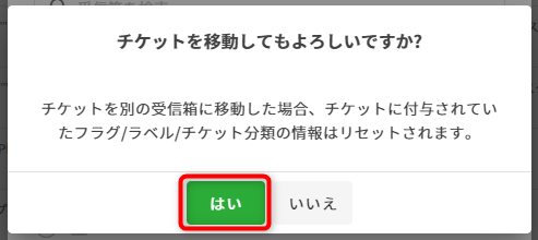 移動したチケットは設定なしの状態になりますので、移動先の受信箱に合わせて再設定をお願いいたします。
