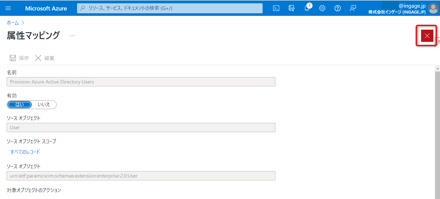 12.以下項目のみかどうか確認をします。Azure Active Directory 属性 displayName