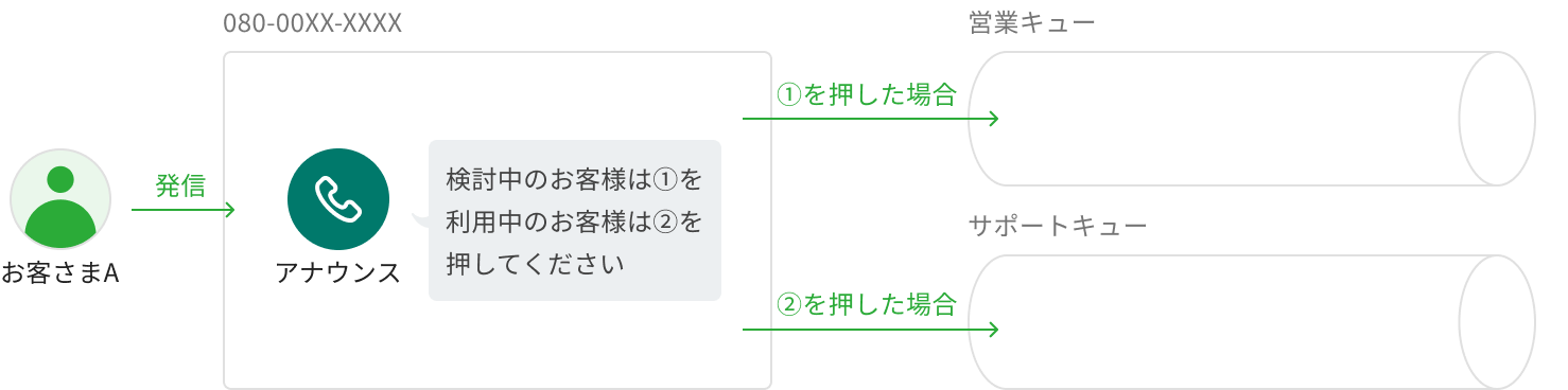 アナウンスで『○○のお問い合わせは1番、△△のお問い合わせは2番・・・』というように、