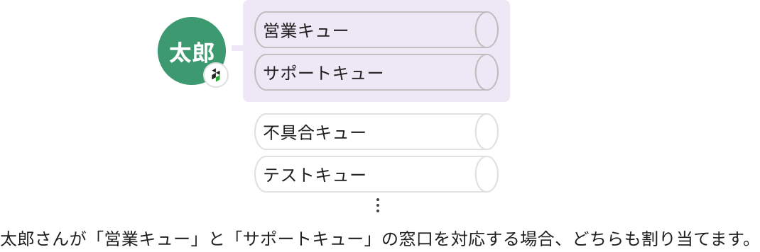 ・複数の窓口の電話を対応するユーザは、ルーティング設定にて複数のキューを割り当てます。