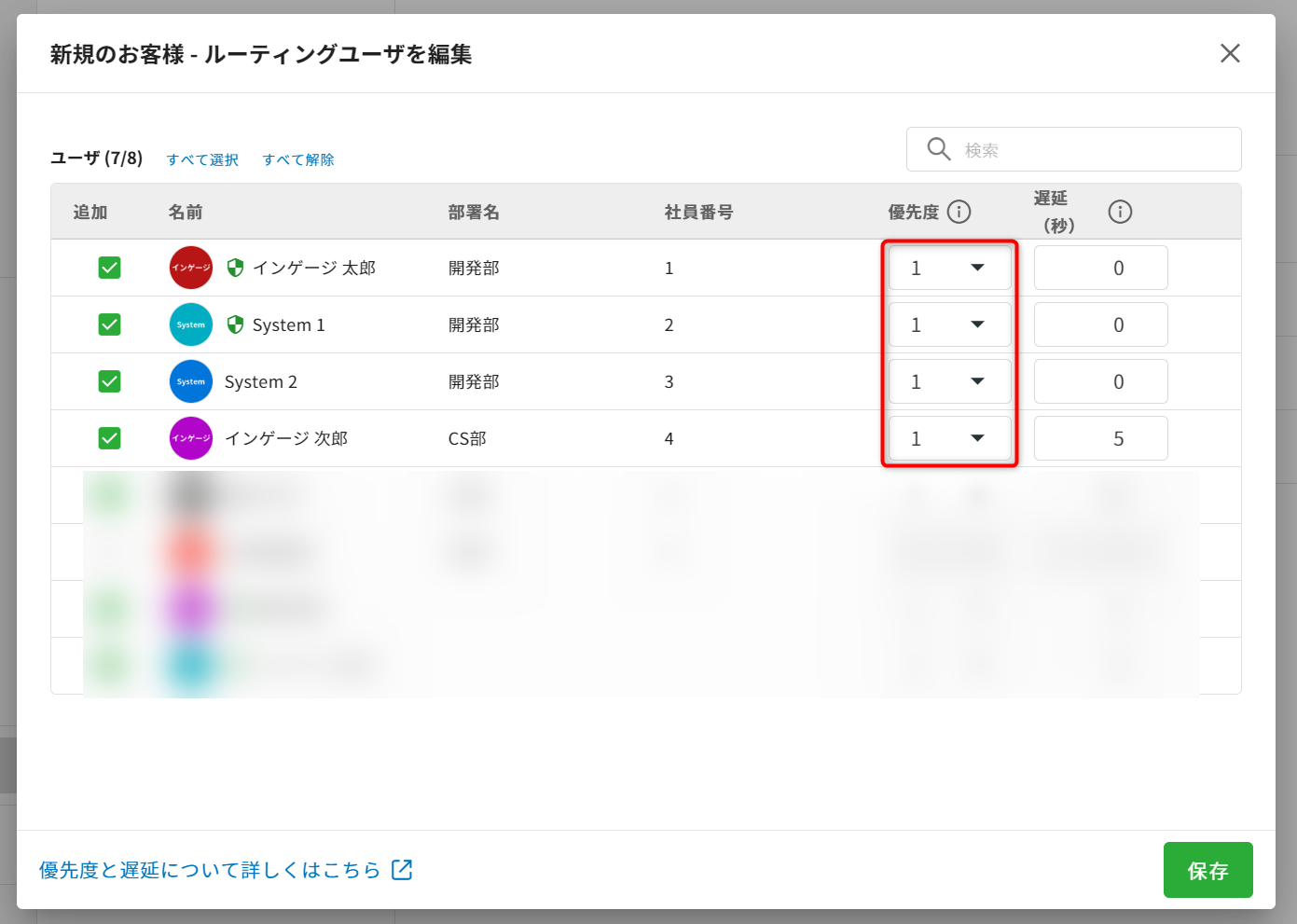 3.キューに紐づいているユーザ一覧が表示されるため、各ユーザの優先度を設定し、保存します。
