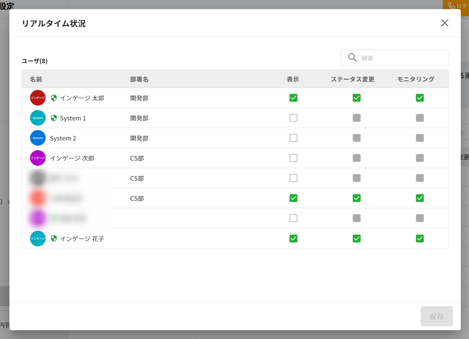 ・リアルタイム状況を使用するにはリアルタイム状況の使用を許可するにはまず、アカウントオーナーにてユーザのリアルタイム状況使用許可を行います。