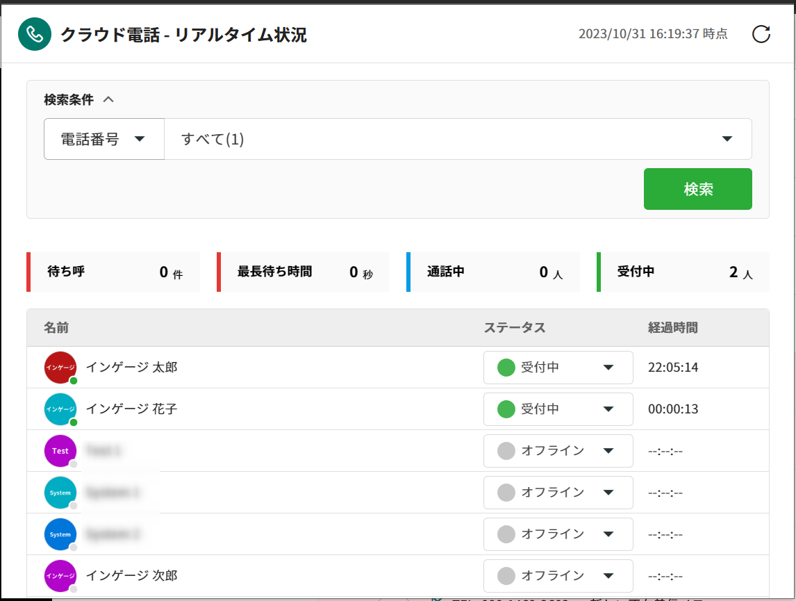 ・リアルタイム状況のご利用にはクラウド電話オプション(有料)プロコースのお申込みが必要です。