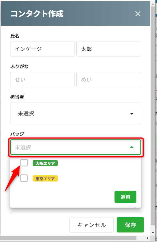 例)コンタクトに「大阪エリア」バッジを設定し、大阪エリアの顧客のみに一斉配信