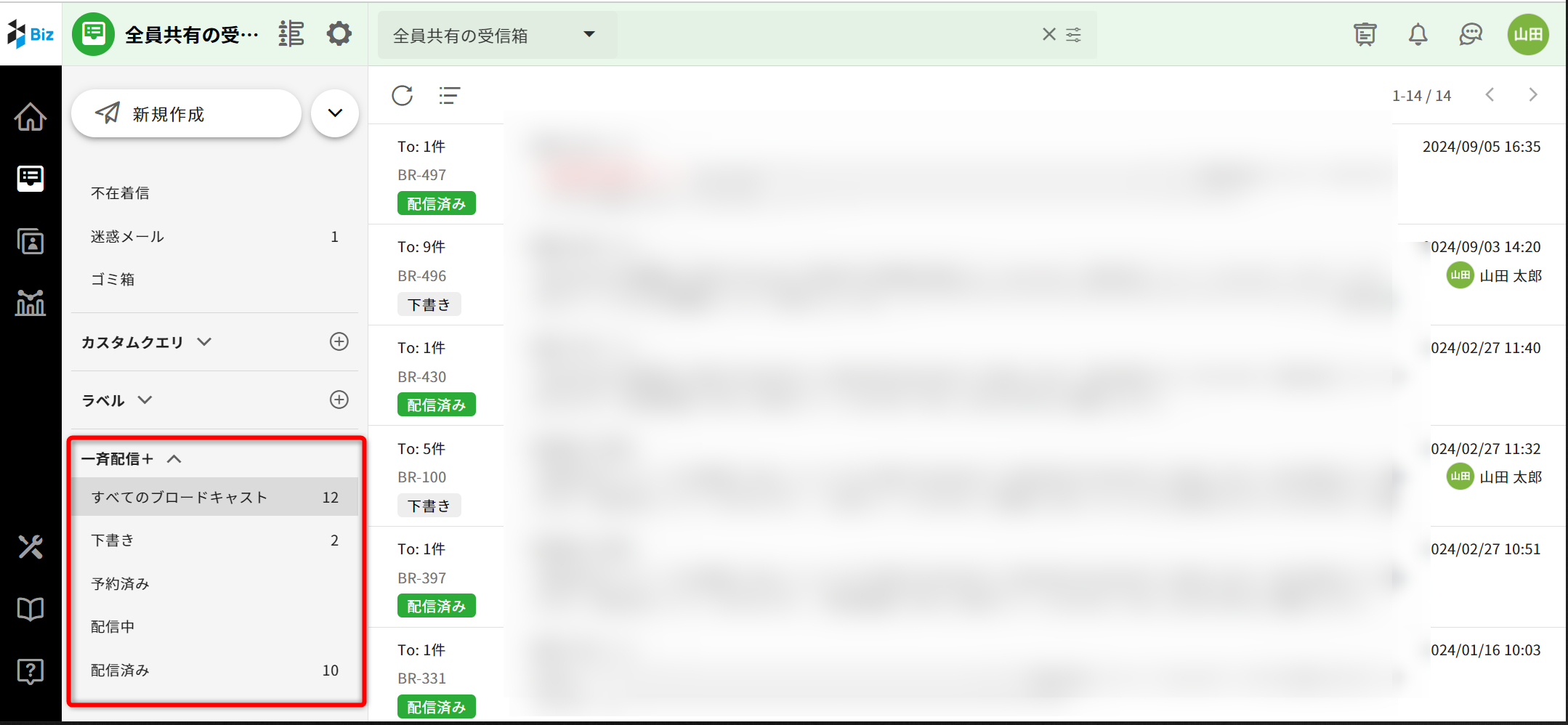 ・一斉配信の下書きを削除をするには受信箱の[マネージャ]以上の権限が必要です。