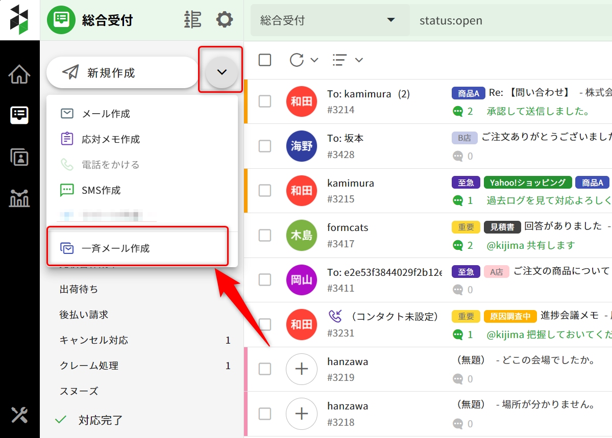 ブロードキャストを作成して一斉配信のメールを送信後、エンドユーザから返信があった場合、チケット一覧に反映されます。