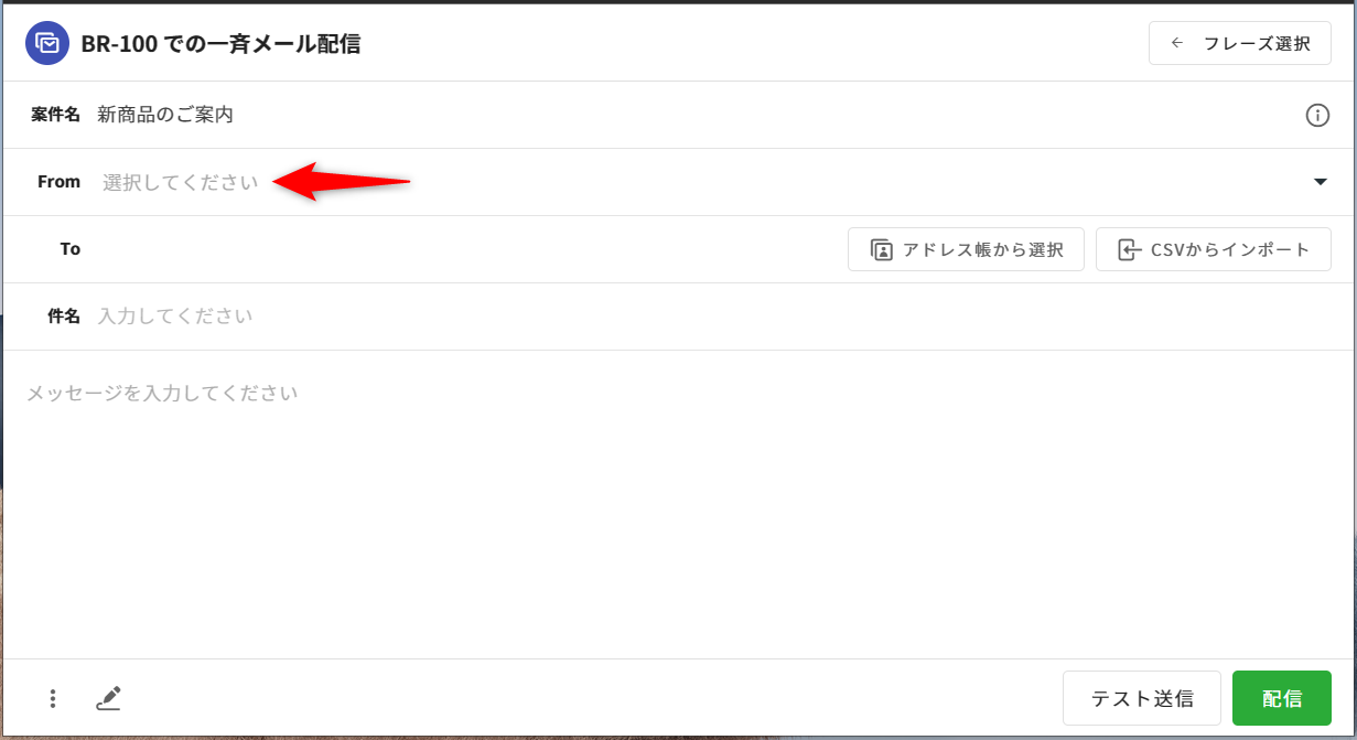 3.[From]の欄は、事前準備で設定した送信メールアドレスの中から選択できます。