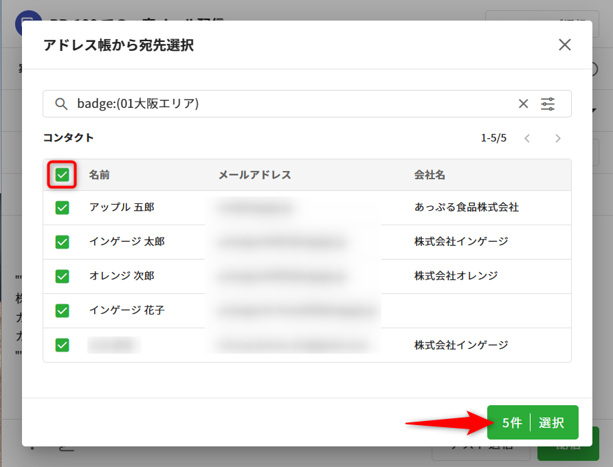 ※5,000件を超えるコンタクトを選択した場合は、エラーになります。