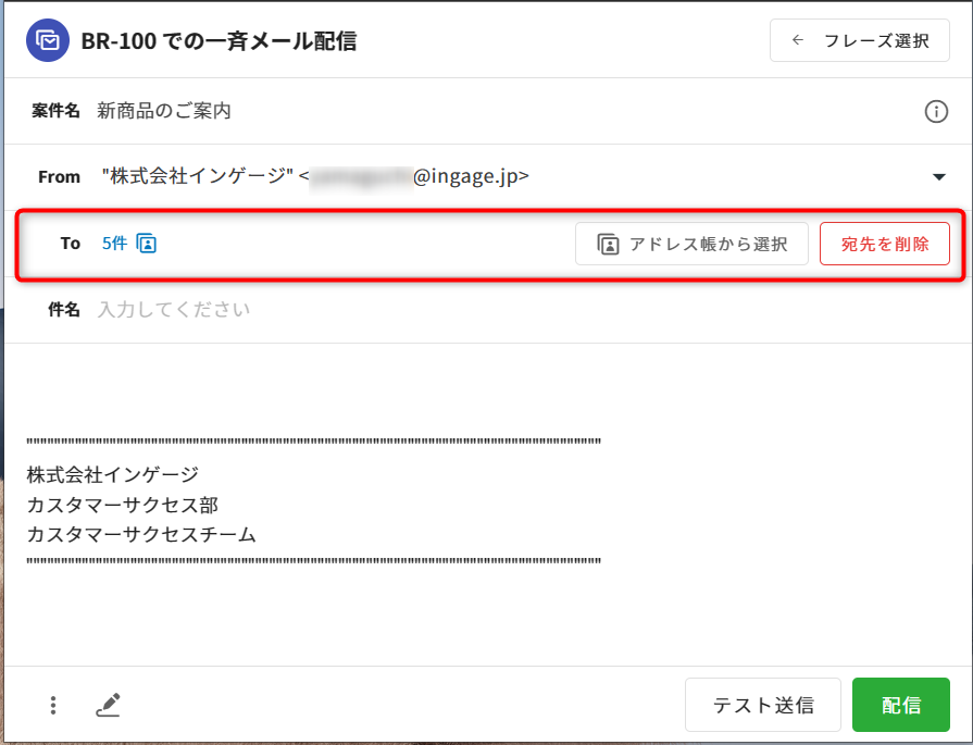 ⑤編集画面に戻ると、選択した宛先件数が[To]欄に表示されます。