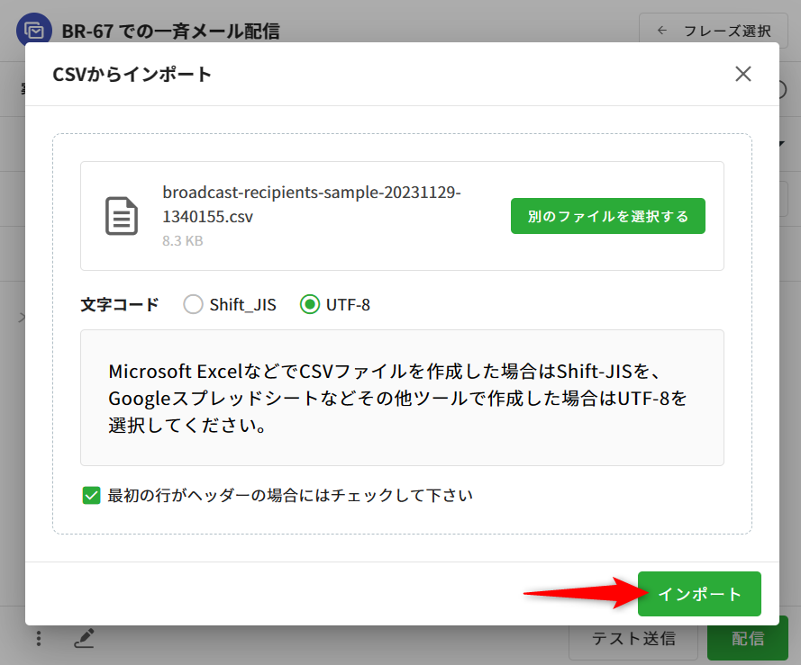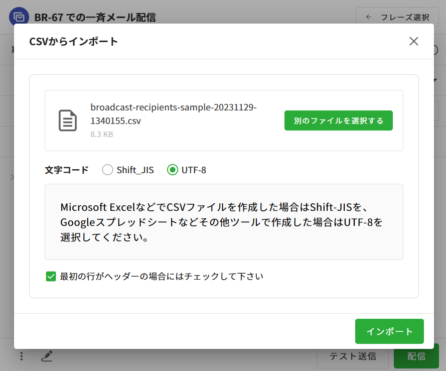 CSVから宛先をインポートする場合