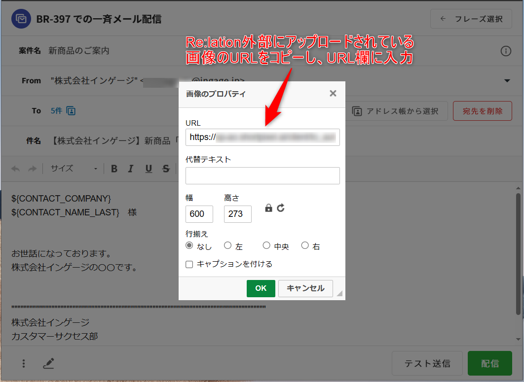 ※ブラウザのURL欄に入力してアクセスすることで表示が可能な画像のみ、一斉配信のインライン画像として利用できます。テスト送信をする方法