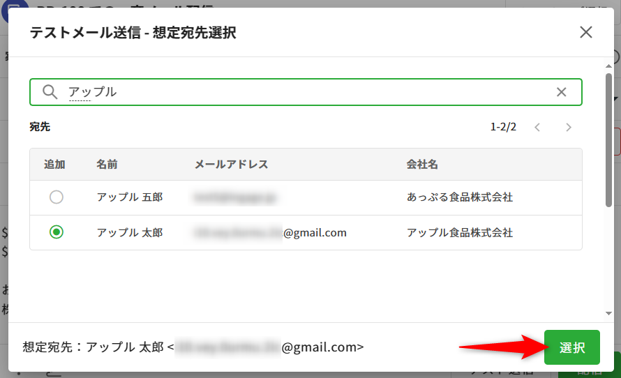 ※テスト送信1回につき選択できる想定宛先は1件のみです。