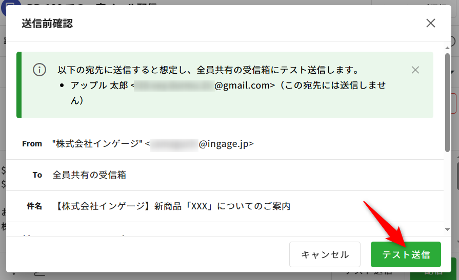 テスト送信では、実際にエンドユーザーへのメールは送信されません。