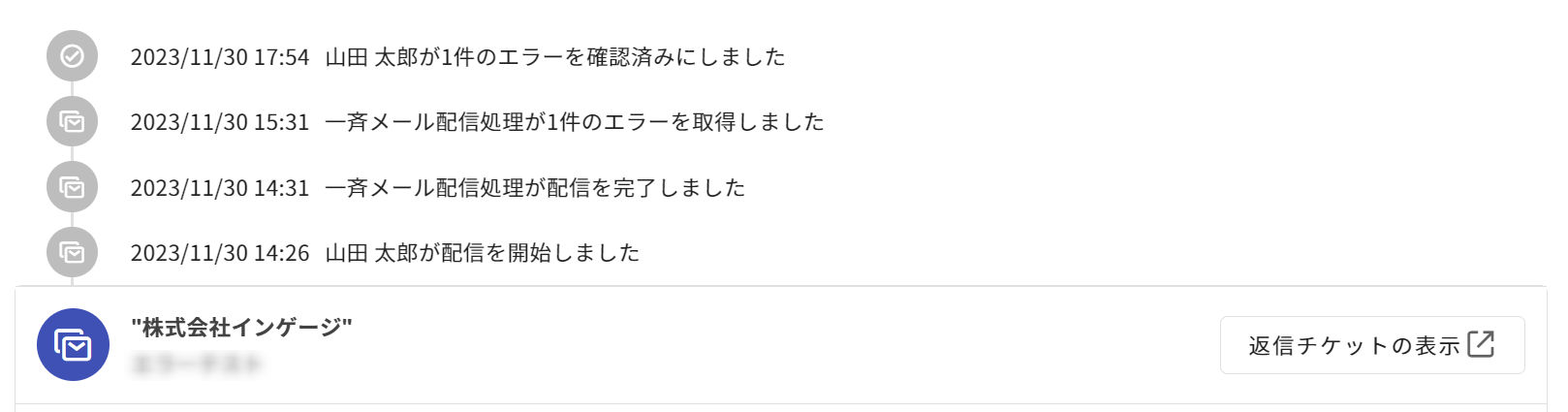 配信エラーを確認済みにした場合も、操作履歴で確認できます。