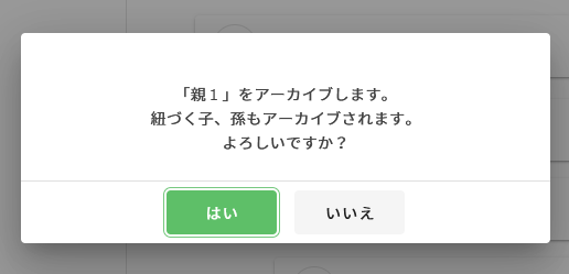 ※子をアーカイブした場合、その子に紐づいている孫もアーカイブされます。
