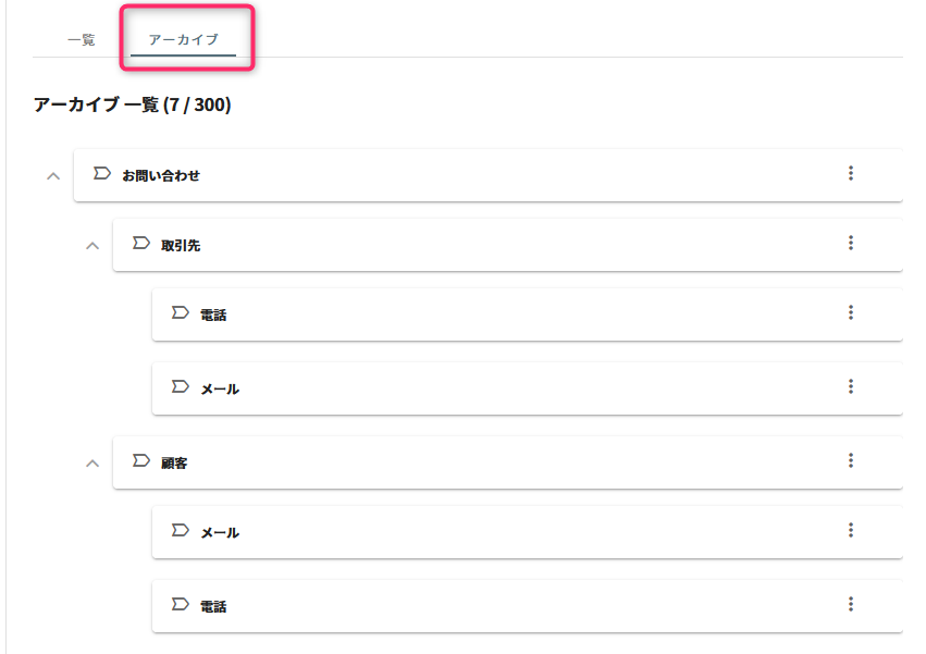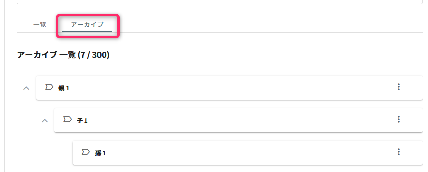 ※親をアーカイブした場合、その親に紐づいている子および孫もアーカイブされます。