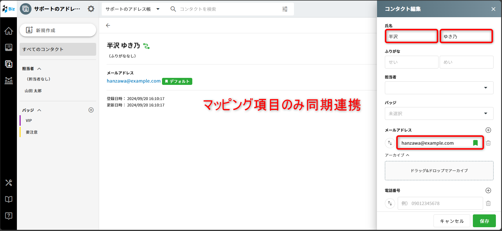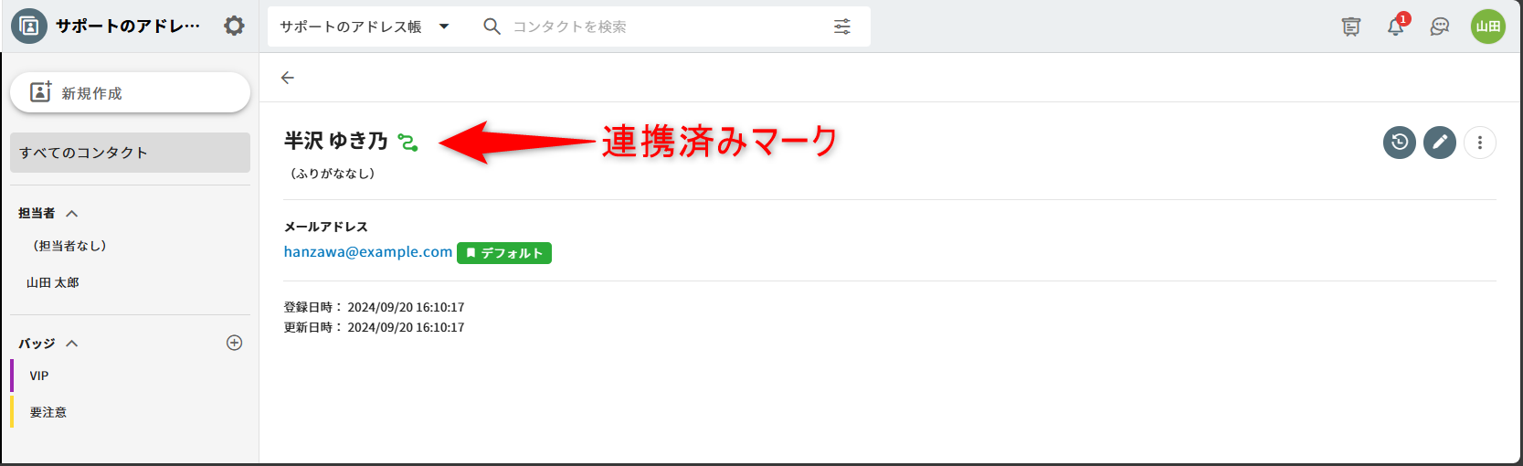 コンタクトには、目印として「連携済み」マークが表示されます。