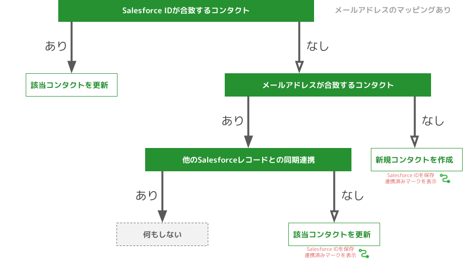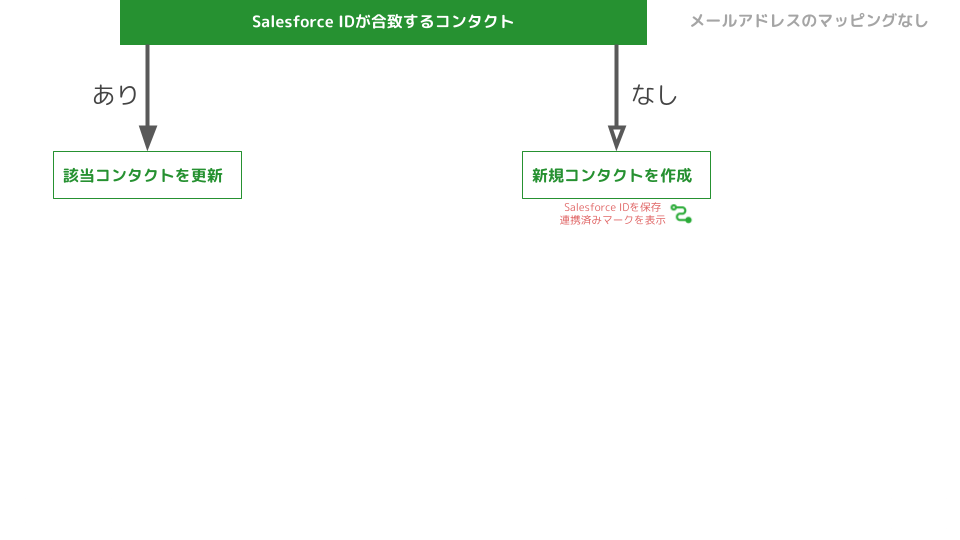 また、マッピング項目にメールアドレスを含むか否かによって、挙動が異なります。
