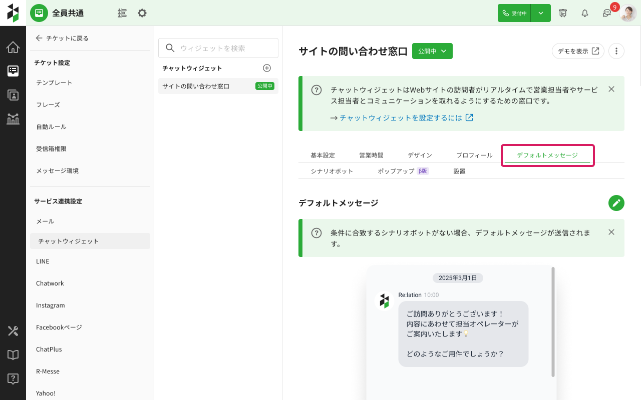 チャットウィジェットの設定をするには:https://faq.relationapp.jp/15249