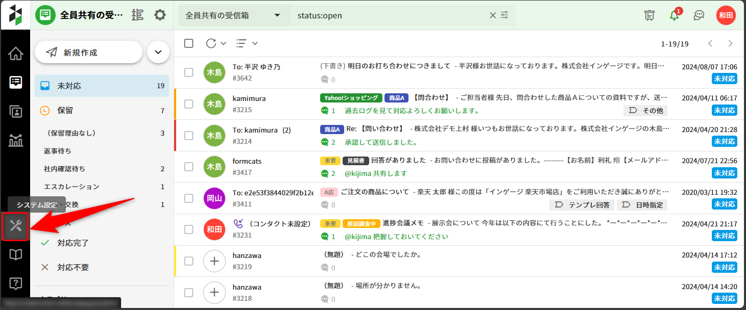 1.グローバルナビゲーションバーのツールアイコンより「システム設定」を選択します。