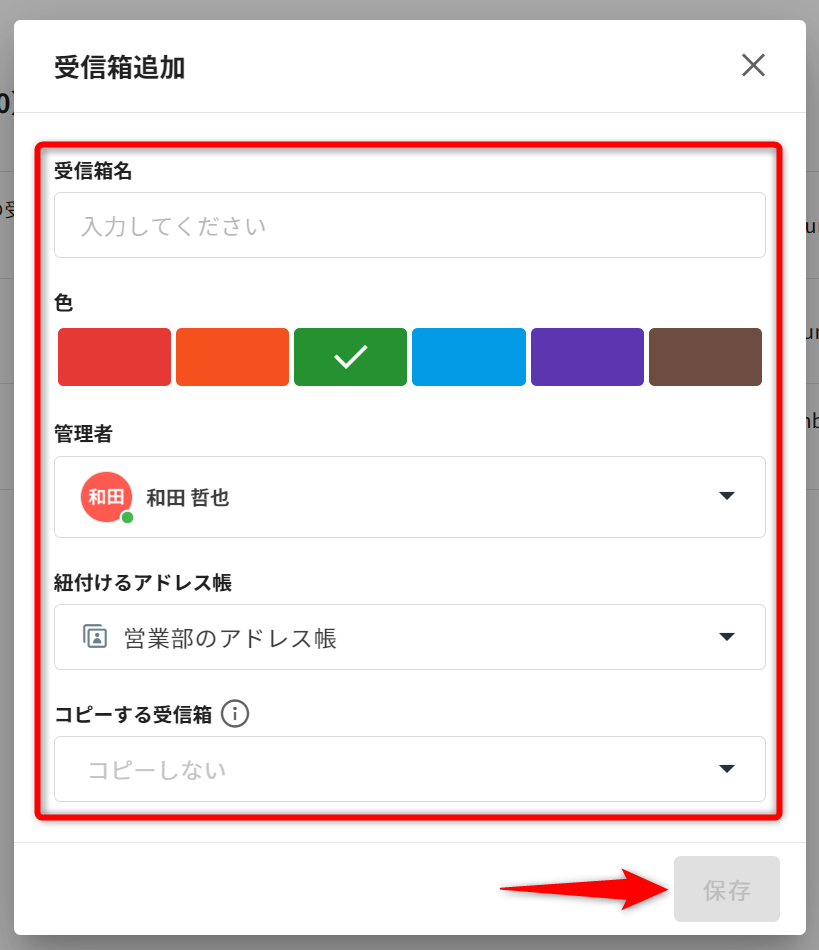 コピーする受信箱を選択すると、選択した特定の受信箱の設定をコピーして、受信箱を作成できます。